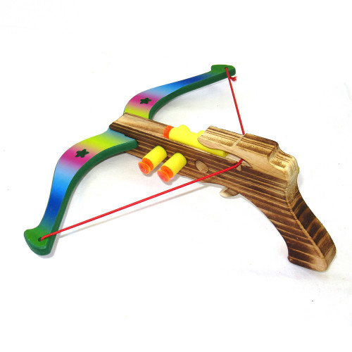 Игрушечное оружие арбалет, изготовлено из дерева. В комплект входят три паралоновые пули.