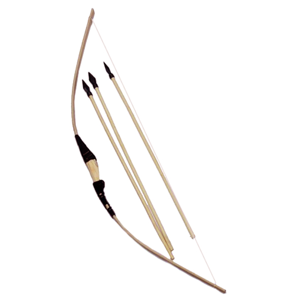 Игрушечное оружие Лук. Изготовлено из дерева, в комплект входят три стрелы с резиновыми наконечниками.