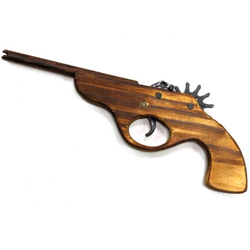Деревянный пистолет при помощи специального механизма,прекрасно стреляет обычными, канцелярскими резинками.