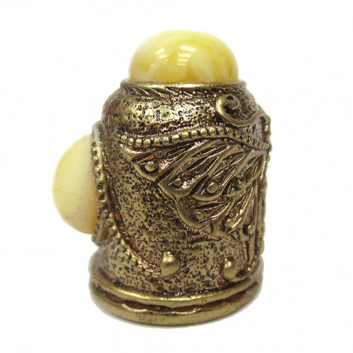 Наперсток из бронзы и янтаря "Бабочка Ажурная с кабошоном".