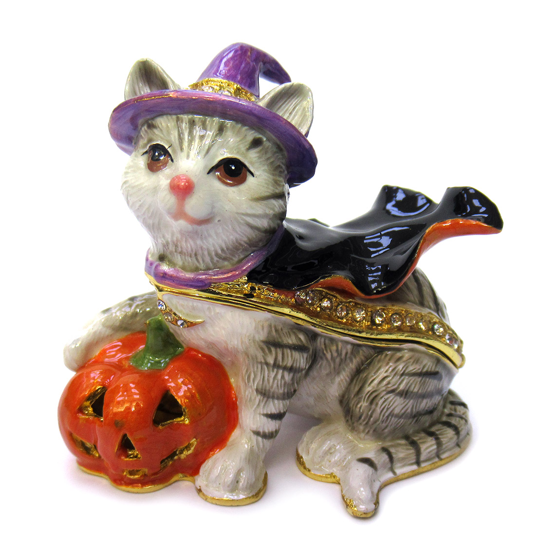 Шкатулка под Фаберже Кот Хэллоуин серый №BP3283K1