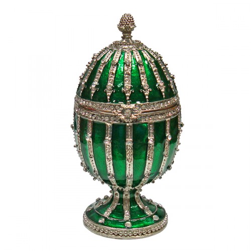 Яйцо-шкатулка Фаберже, музыкальное, изготовлено из металла  и украшено стразами.