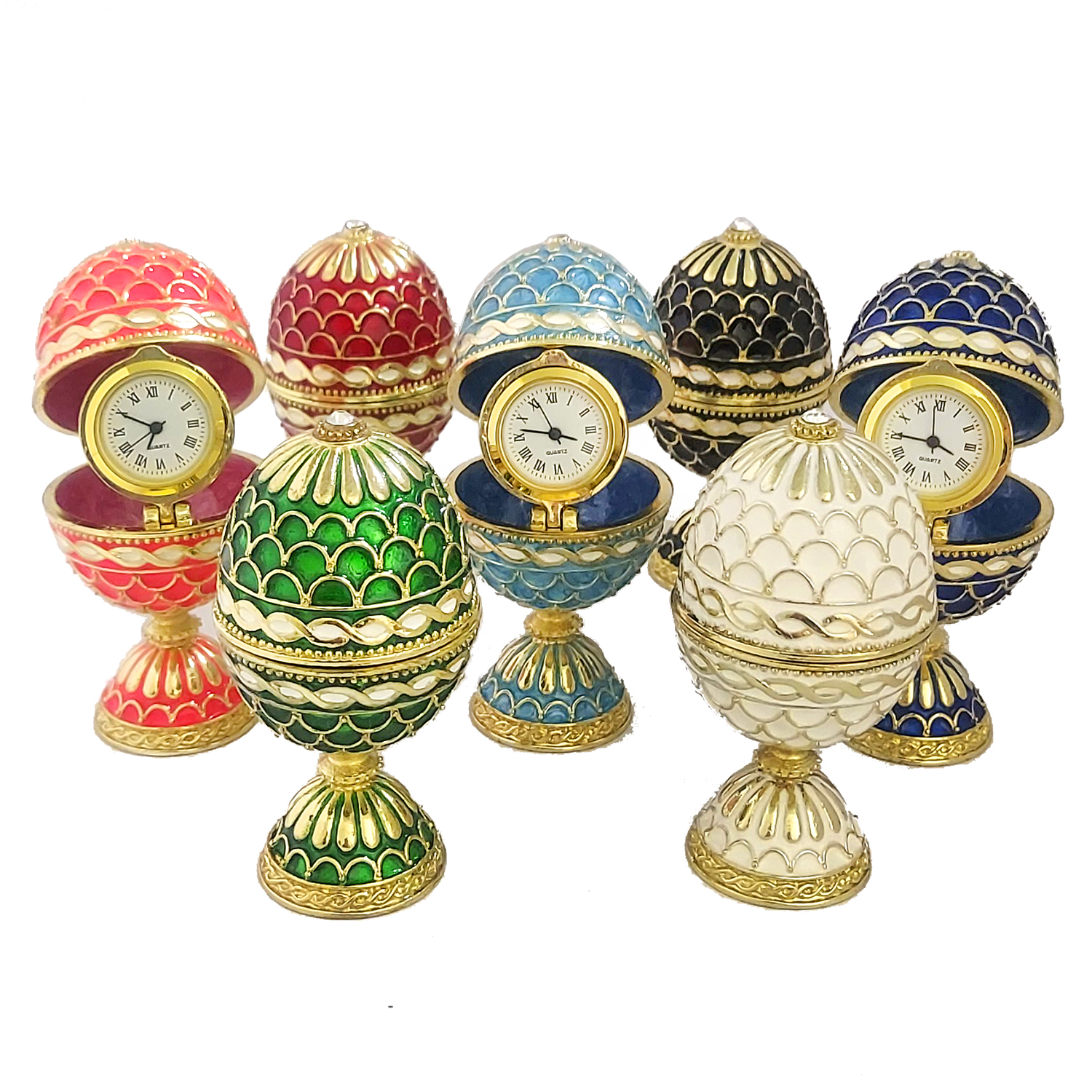 Яйцо-шкатулка под Фаберже с часами внутри.