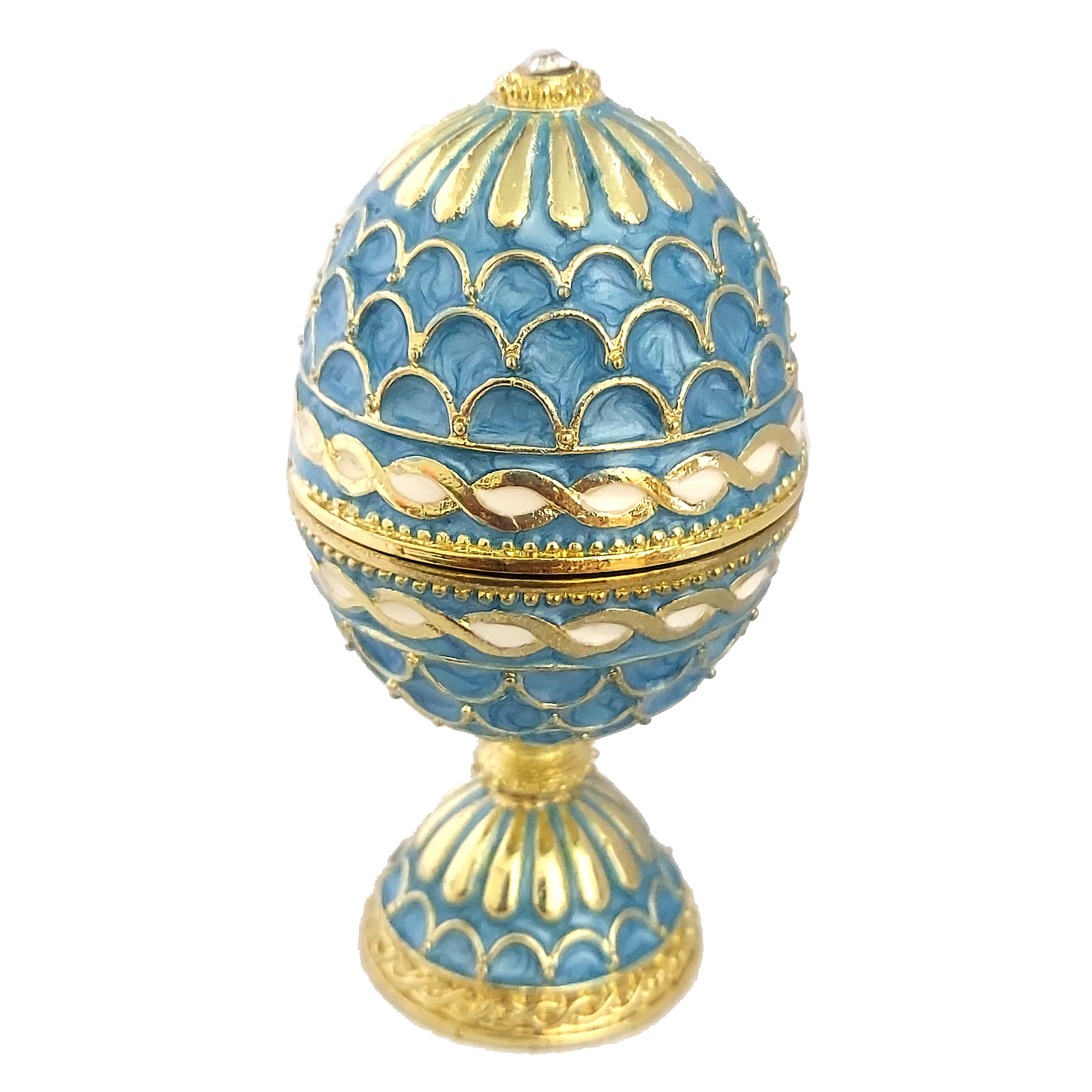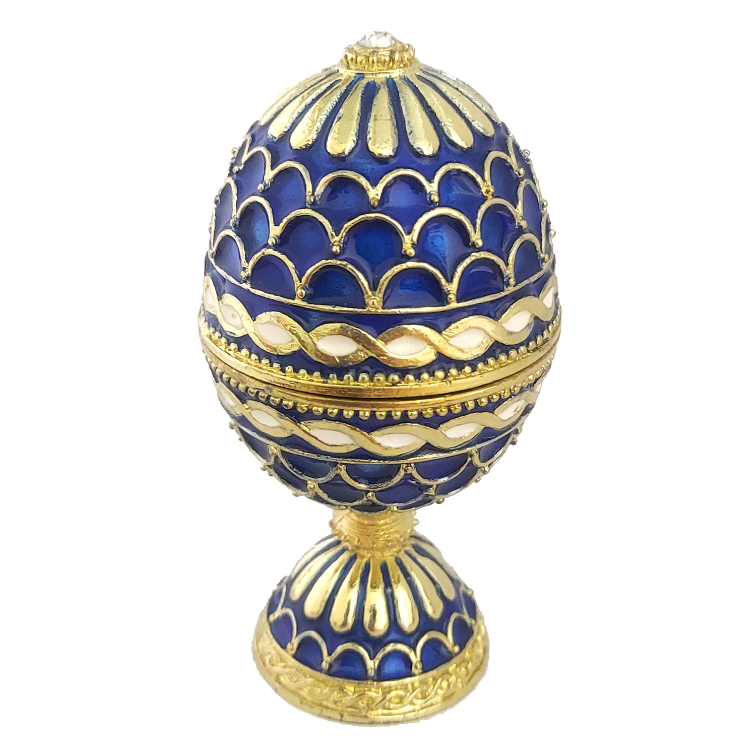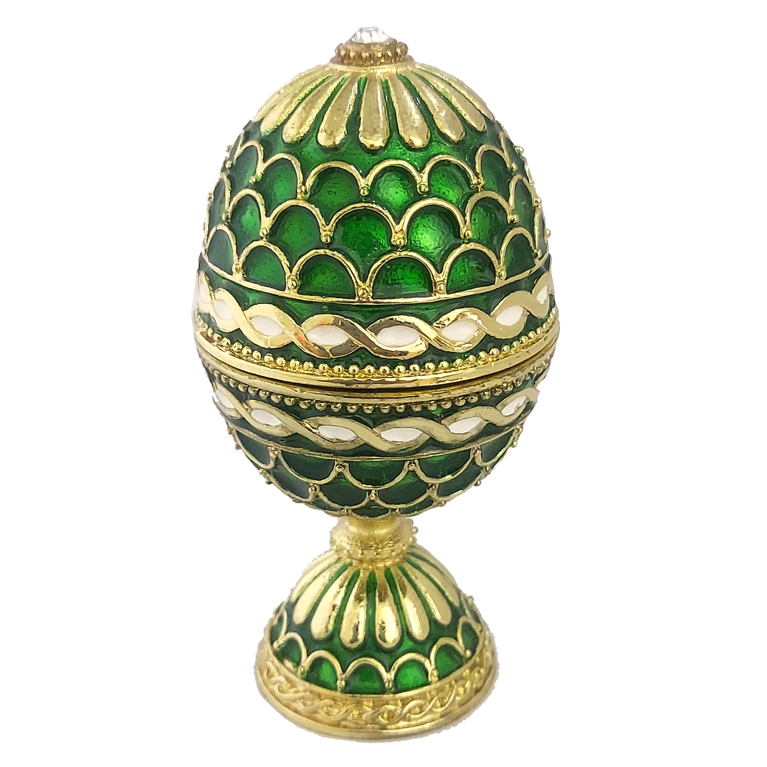 Яйцо-шкатулка в стиле Фаберже, изготовлено из латуни, покрыто холодной эмалью и инкрустировано стразами.