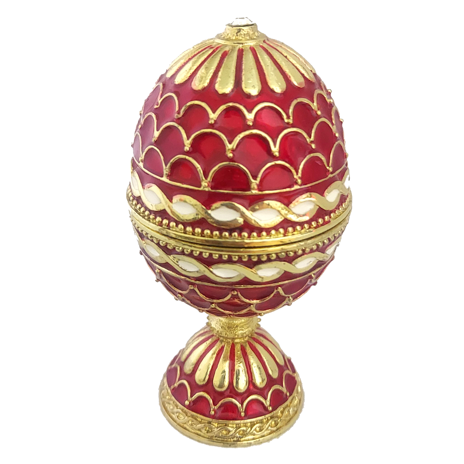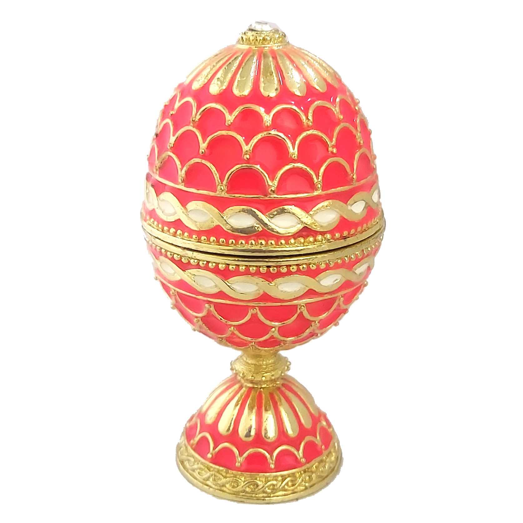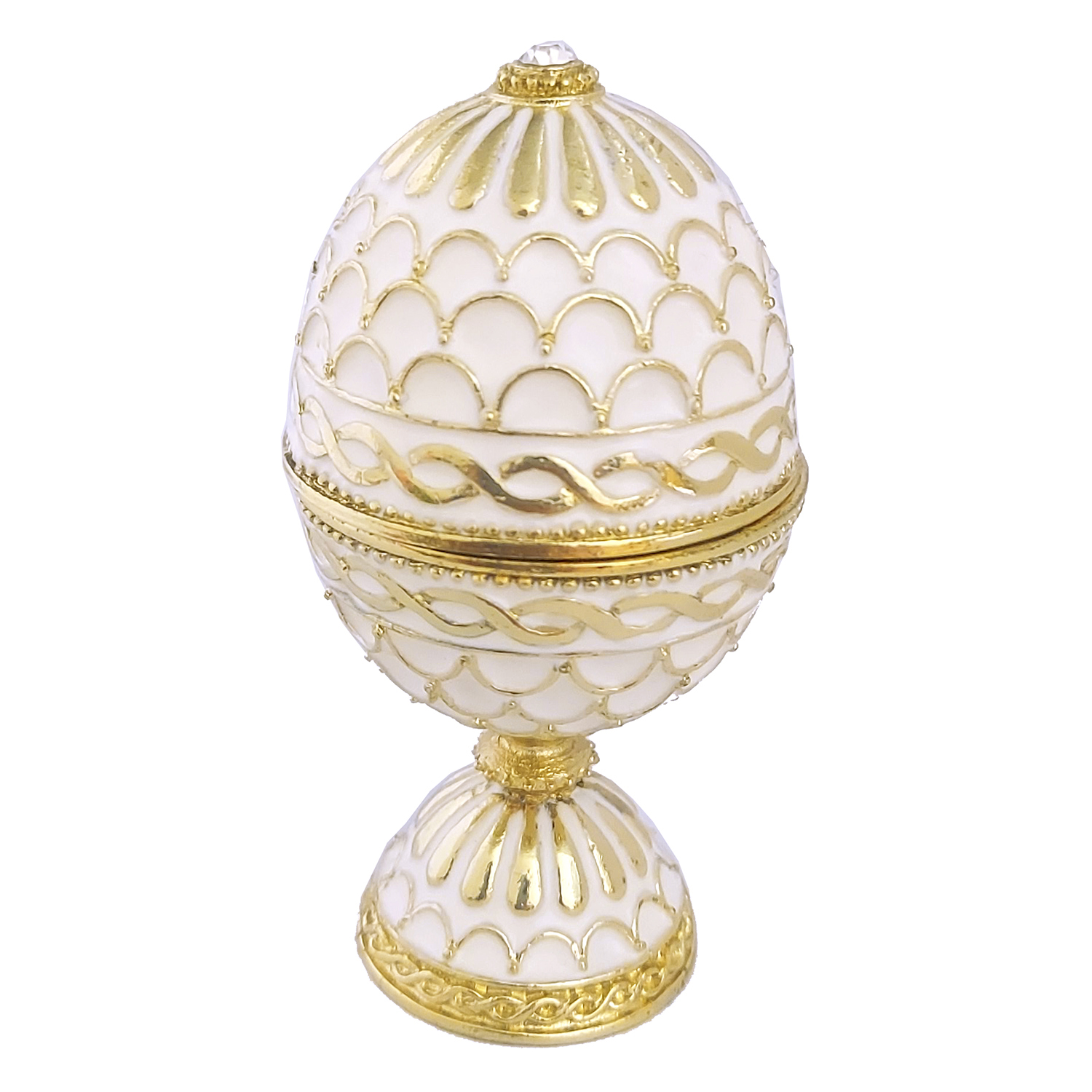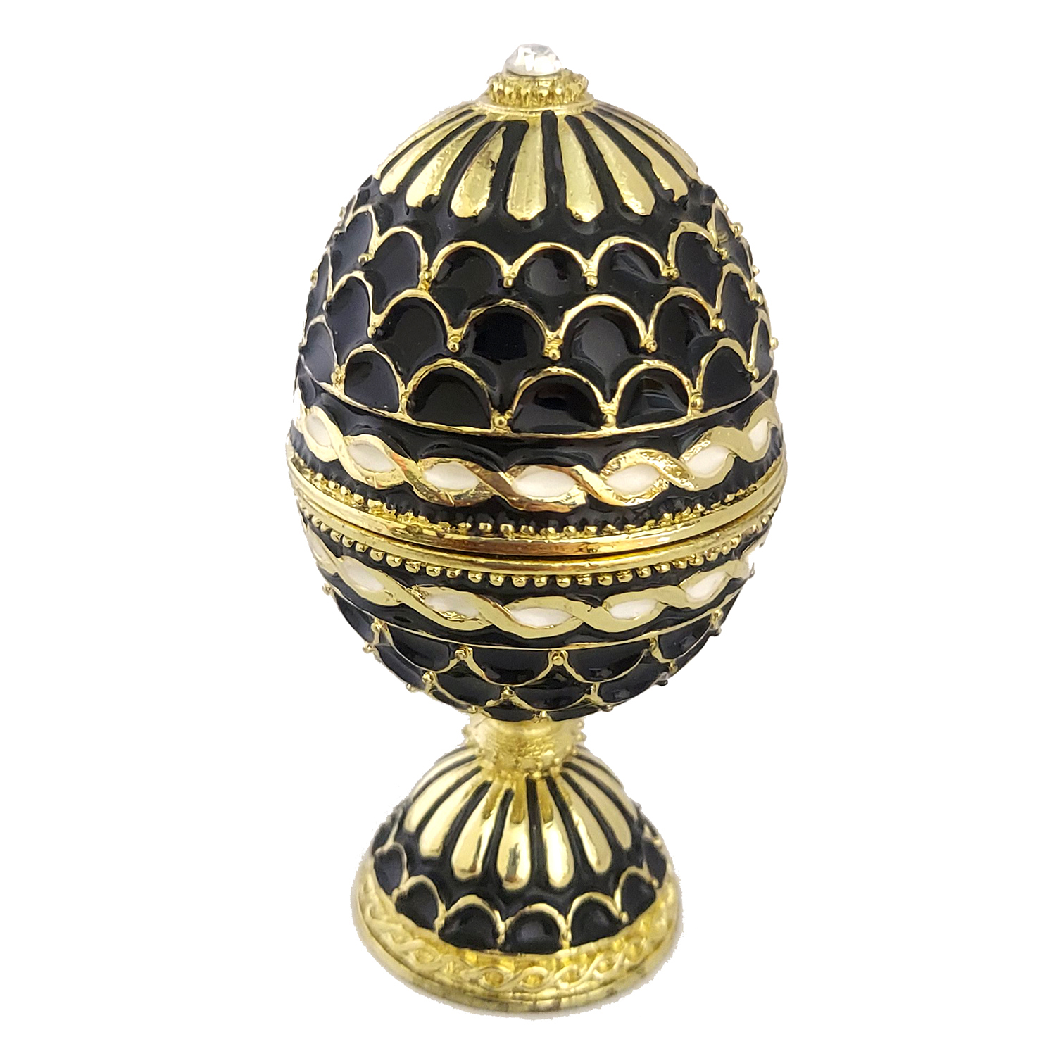 Яйцо-шкатулка в стиле Фаберже, изготовлено из латуни, покрыто холодной эмалью и инкрустировано стразами.