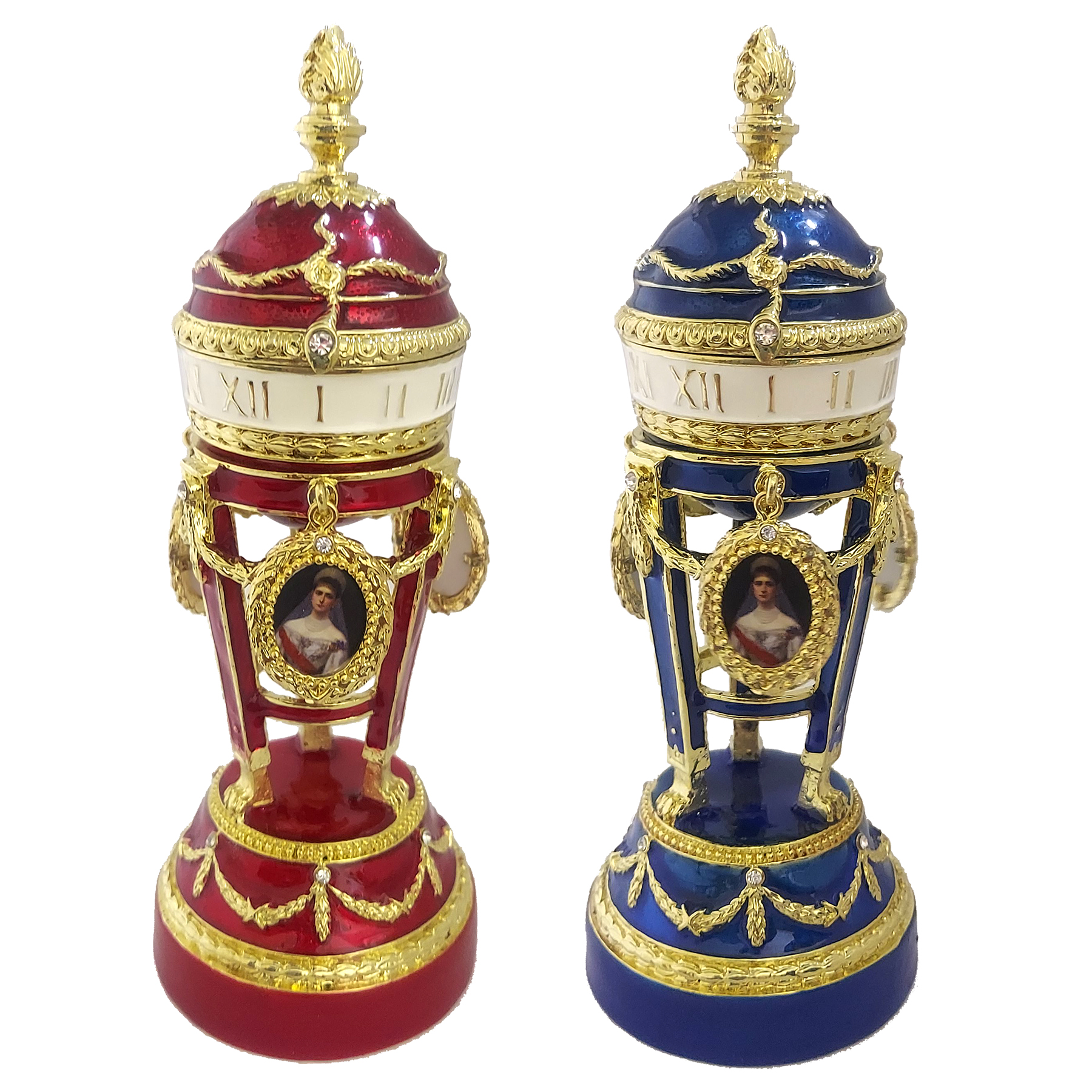 Яйцо-шкатулка в стиле Фаберже, изготовлено из латуни, покрыто холодной эмалью и инкрустировано стразами.