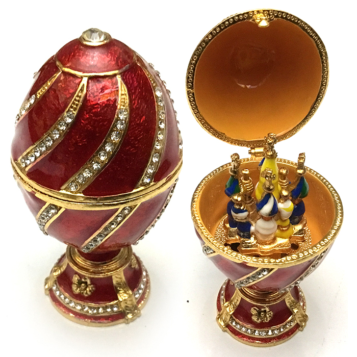 Яйцо-шкатулка в стиле Фаберже. Внутри с фигуркой храма на магните.