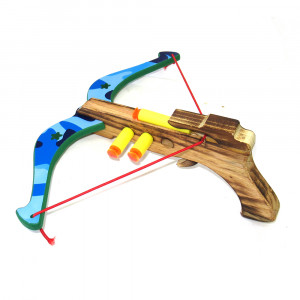 Игрушечное оружие арбалет, изготовлено из дерева. В комплект входят три паралоновые пули.