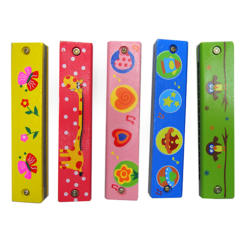 Детская губная гармошка выполнена из натурального дерева и украшена забавным ярким рисунком. Цвета в ассортименте.