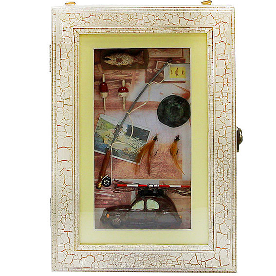 Ключница настенная из дерева с элементами декора рыбалки.