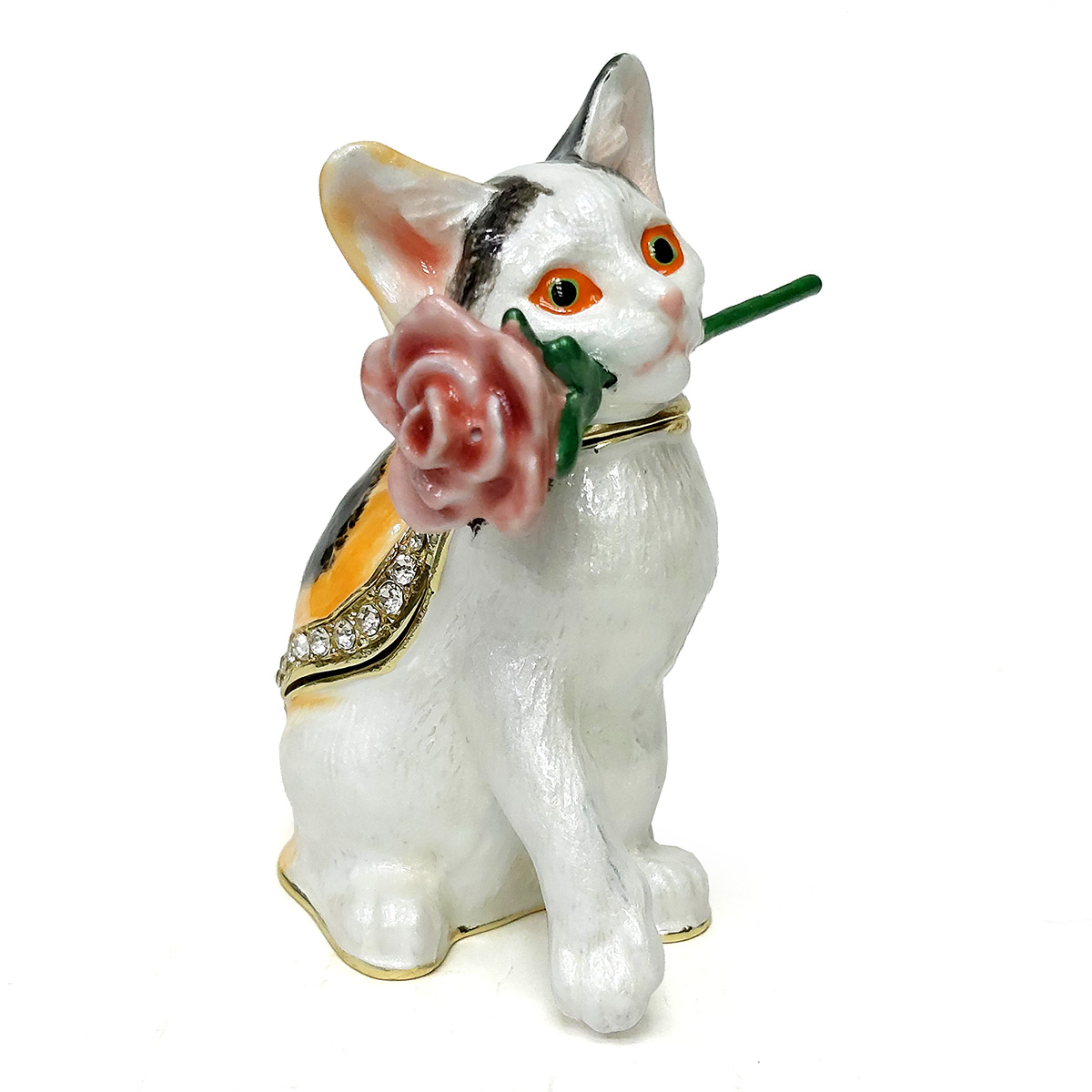 Шкатулка под Фаберже Кот с цветком №SBP3801K1