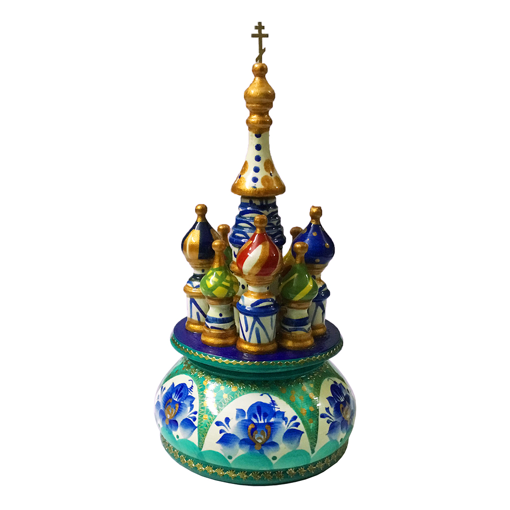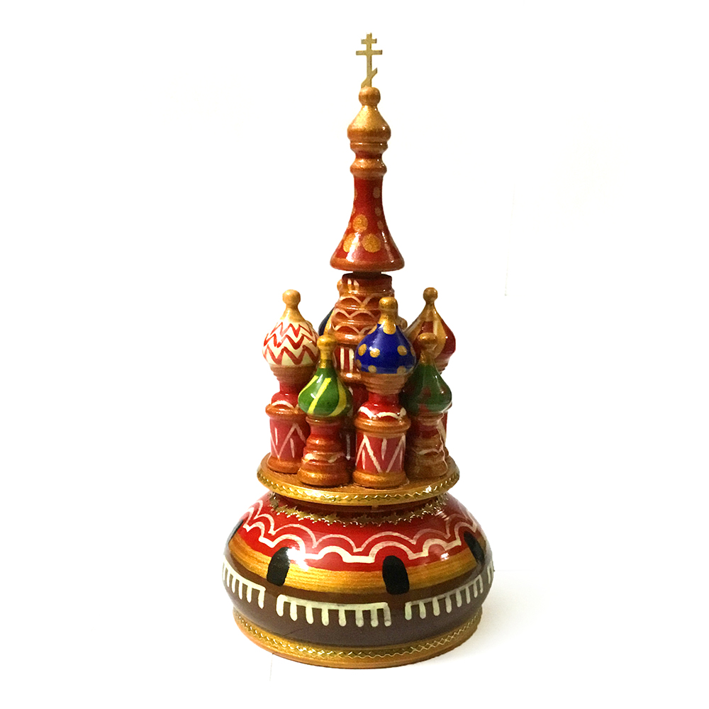 Церковь музыкальная из дерева, ручная работа, художественная роспись. С встроенным заводным музыкальным механизмом, благодаря которому вращается и звучит мелодия.