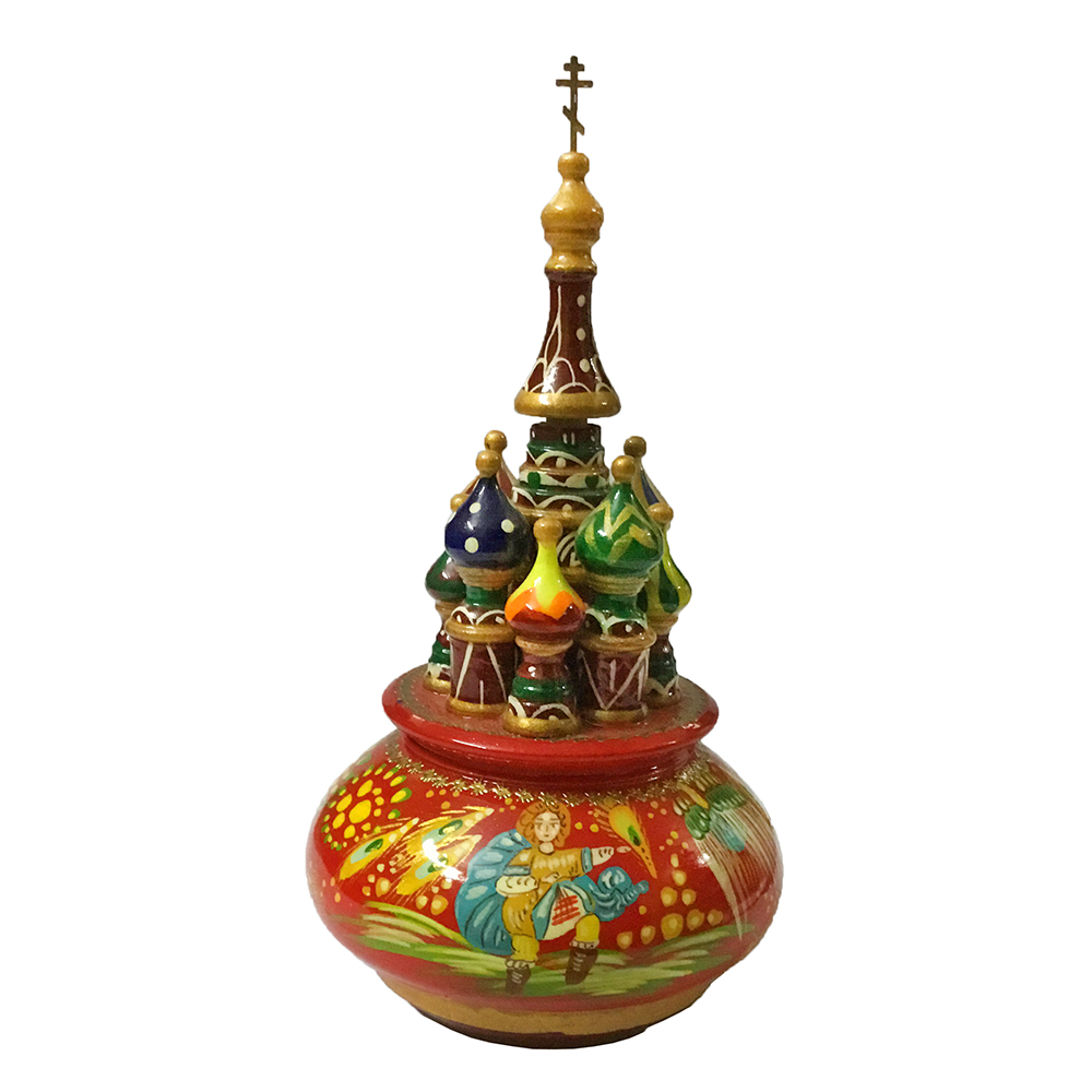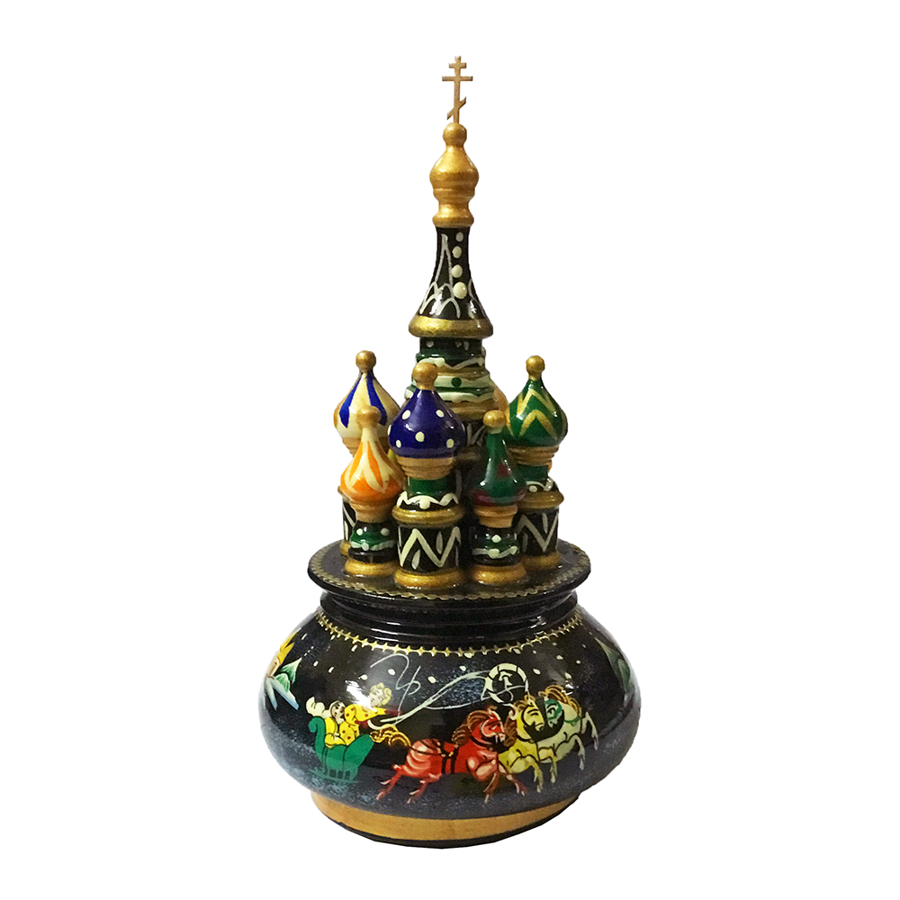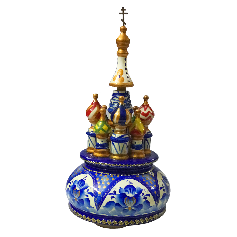 Церковь музыкальная из дерева, ручная работа, художественная роспись. С встроенным заводным музыкальным механизмом, благодаря которому вращается и звучит мелодия.