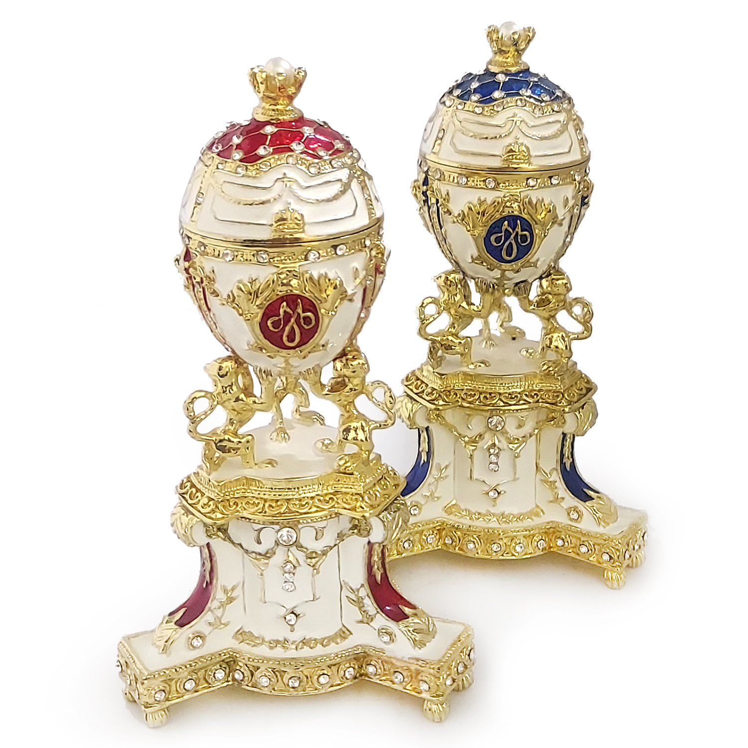 Яйцо-шкатулка в стиле Фаберже, изготовлено из латуни, покрыто холодной эмалью и инкрустировано стразами.