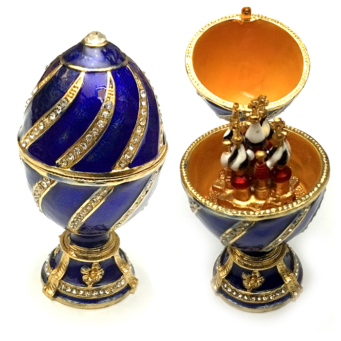 Яйцо-шкатулка в стиле Фаберже. Внутри с фигуркой храма на магните.