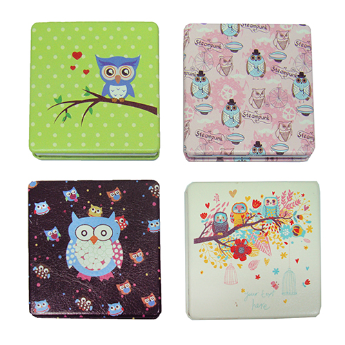 Карманное зеркальце с отделкой из искусственной кожи с изображениями Сов - это оригинальный и стильный косметический сувенир, практичный подарок который оценит любая девушка или женщина.