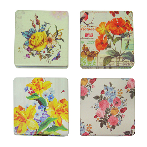 Зеркало металлическое с отделкой из искусственной кожи двустороннее прямоугольное на магните с разными изображениями Цветов.