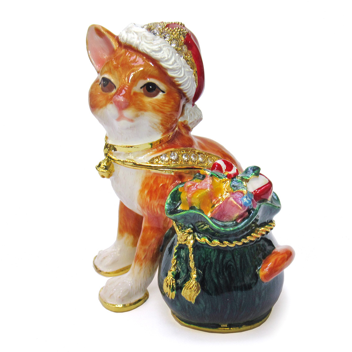 Шкатулка під Фаберже Кіт з мішком подарунків №BP3284K1