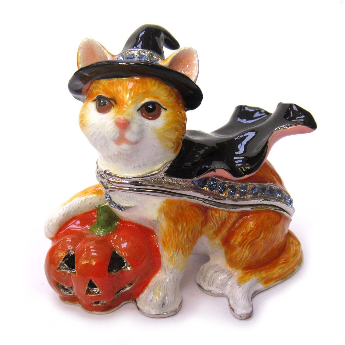 Шкатулка під Фаберже Кіт Хелловін рижий №BP3283P1