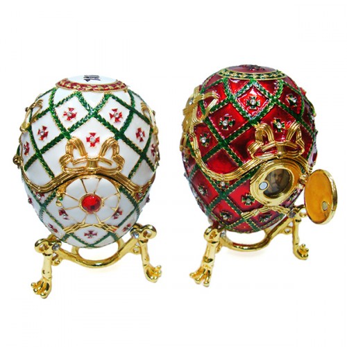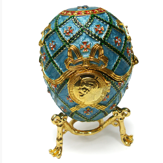 Яйце-шкатулка під Фаберже. Зроблено з металу і прикрашено стразами.