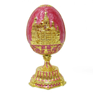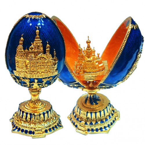 Яйце-шкатулка під Фаберже. Виготовлено з металу ,покрито кольоровою емаллю та прикрашено стразами. Усередині храм Спас на Крові на магниті.