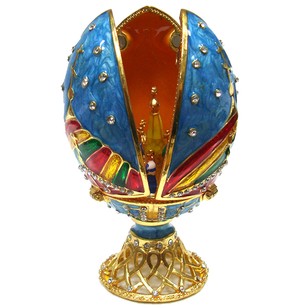 Розкішна шкатулка - яйце в стилі Фаберже виготовлено з металу, покрито холодною емаллю і інкрустовано стразами.