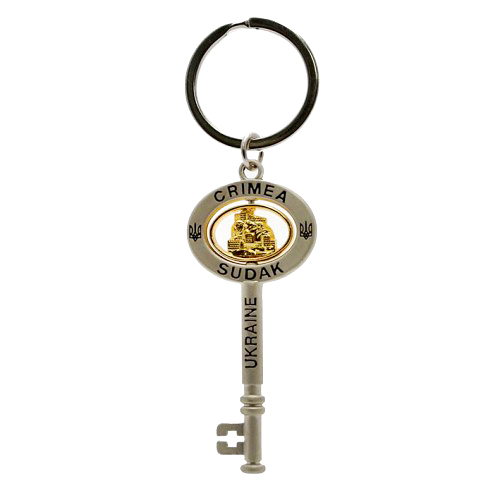 Брелок металевий Ключ Україна-Крим-Судак. Брелок з видом Генуезької фортеці.