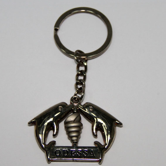 Брелок металевий Одеса з дельфінами.