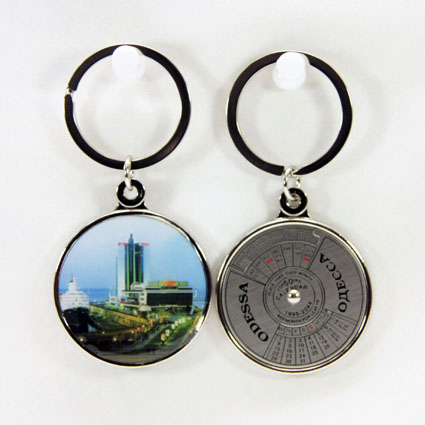 Брелок-календар металевий на 50 років з видом на морський порт (Одеса) - обертаючи диск, поєднуємо шукані рік і місяць - на нижній шкалі отримуємо актуальний календар. Просто і зручно. Враховуючи, що календар повторюється кожні 12 років, цей брелок календар - навічно. Може стати оригінальним подарунком.