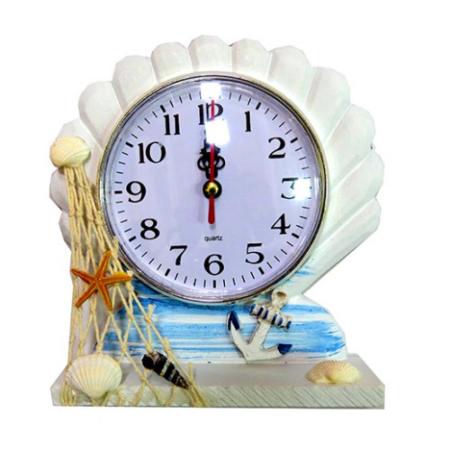 Годинники настільні кварцові у вигляді черепашки з декоративними елементами з полістоуну на морську тему.